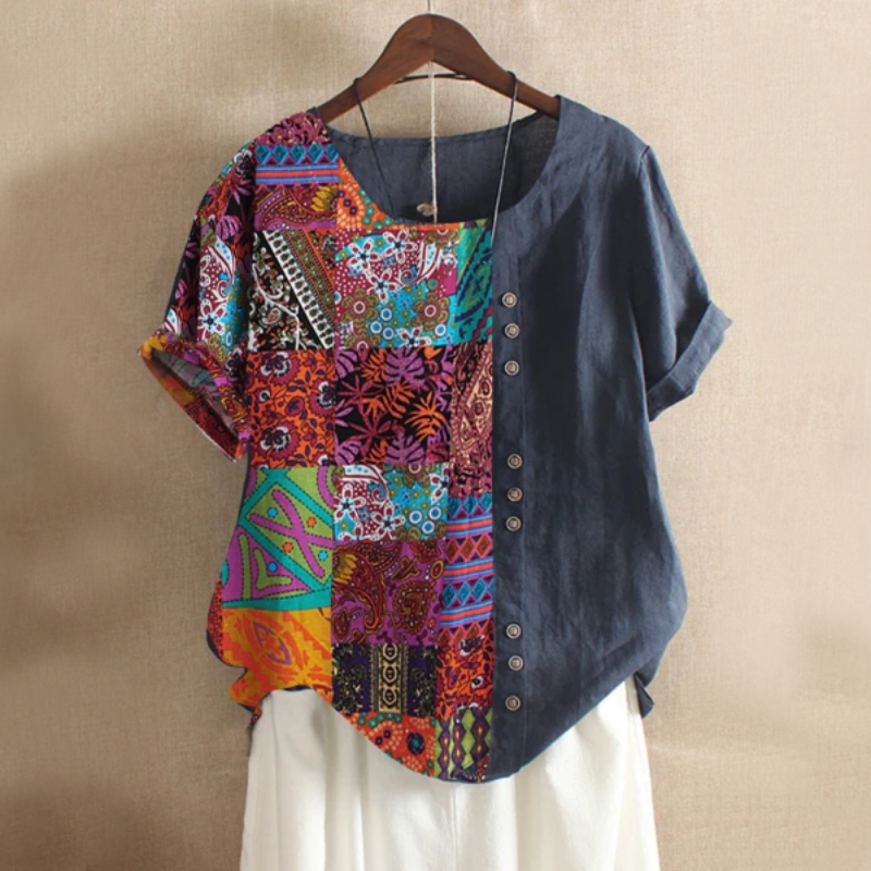Flower Print Lantern Sleeve Mandarin Collar Blouse