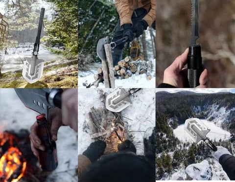 Here's a list of the uses the survival shovel comes with that'll help you survive in the wilderness, or just help with general outdoors usage while camping, hiking, or military usage: