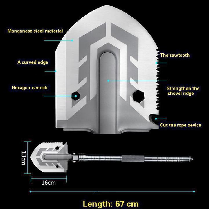 Here's a list of the uses the survival shovel comes with that'll help you survive in the wilderness, or just help with general outdoors usage while camping, hiking, or military usage: