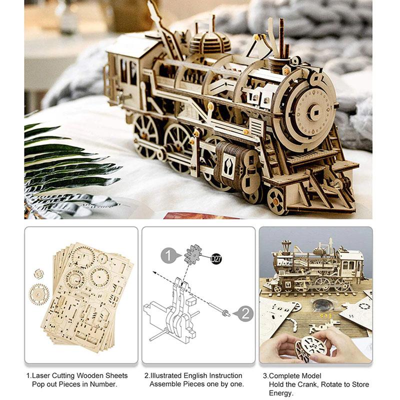 This 3D Wooden Clockwork Train Building Kit will keep your kids busy for hours! They can assemble this train and build a collectible statement piece for their home. It takes about 6 hours to complete. The laser precision cutting makes assembling much easier. Each piece has a corresponding code! Once it's done, watch it move!