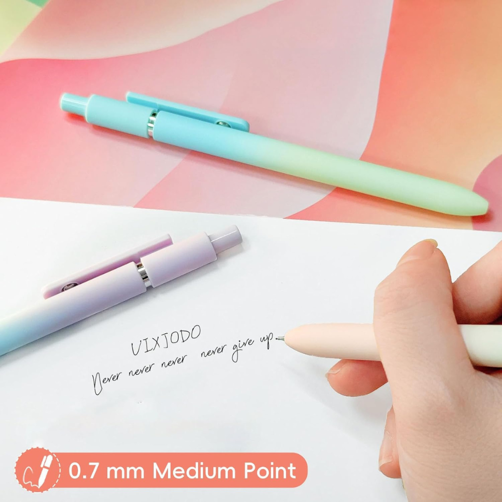 These Pastel Gradient Gel Pens combine modern design with writing comfort. The click-top format ensures quick access, while the soft grip supports longer use. The 0.7mm tips deliver crisp black lines that work well in any setting. Whether you’re writing at home or working on the go, this set keeps your writing tools stylish and practical.
