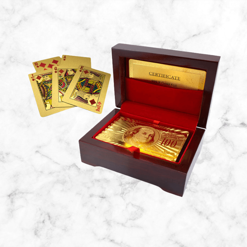 This unique set of 24-karat-gold playing cards will always make you look like a winner during game night. Each of the 54 cards is covered in certified 99.9% 24-karat-gold foil for a luxurious look.