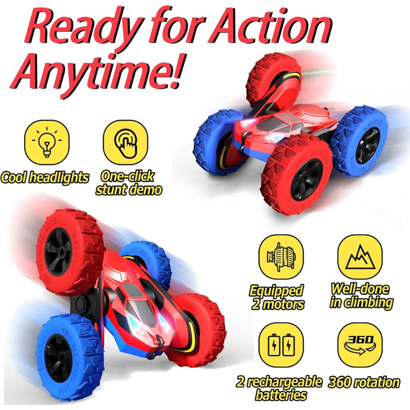 Explore an engaging remote driving experience with this RC Stunt Toy Car With 360 Degree Flips And Double Sided Driving. This vehicle operates across multiple surfaces and delivers dynamic action with its 360-degree flip function and dual-sided movement. Built for activity-focused sessions, it shifts direction instantly and adjusts when facing obstacles.